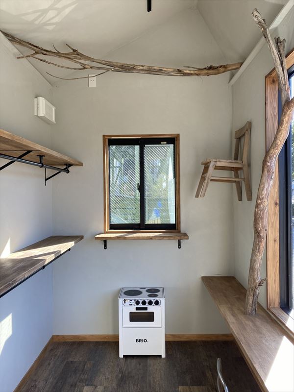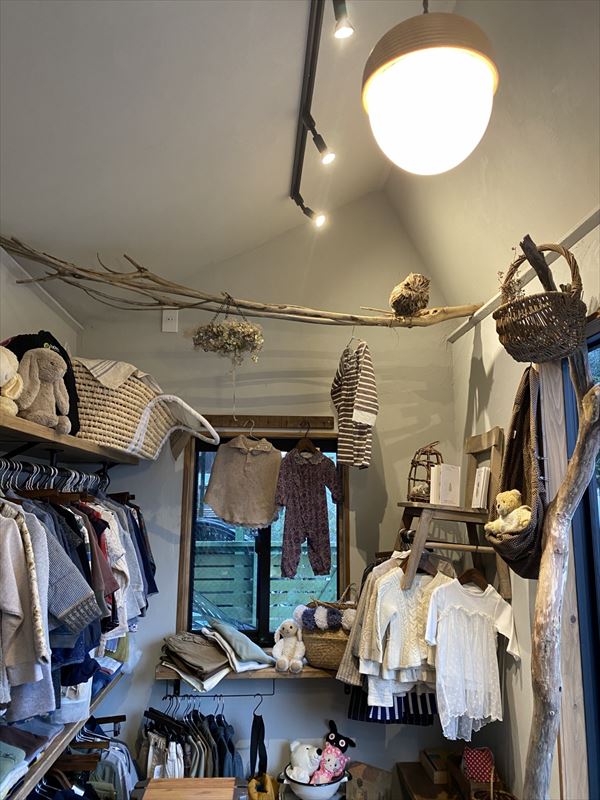 ヨーロッパの片田舎、山の中に佇むかわいらしい小屋をイメージしたこどもふくと絵本のusedオンラインセレクトショップの倉庫を制作いたしました。